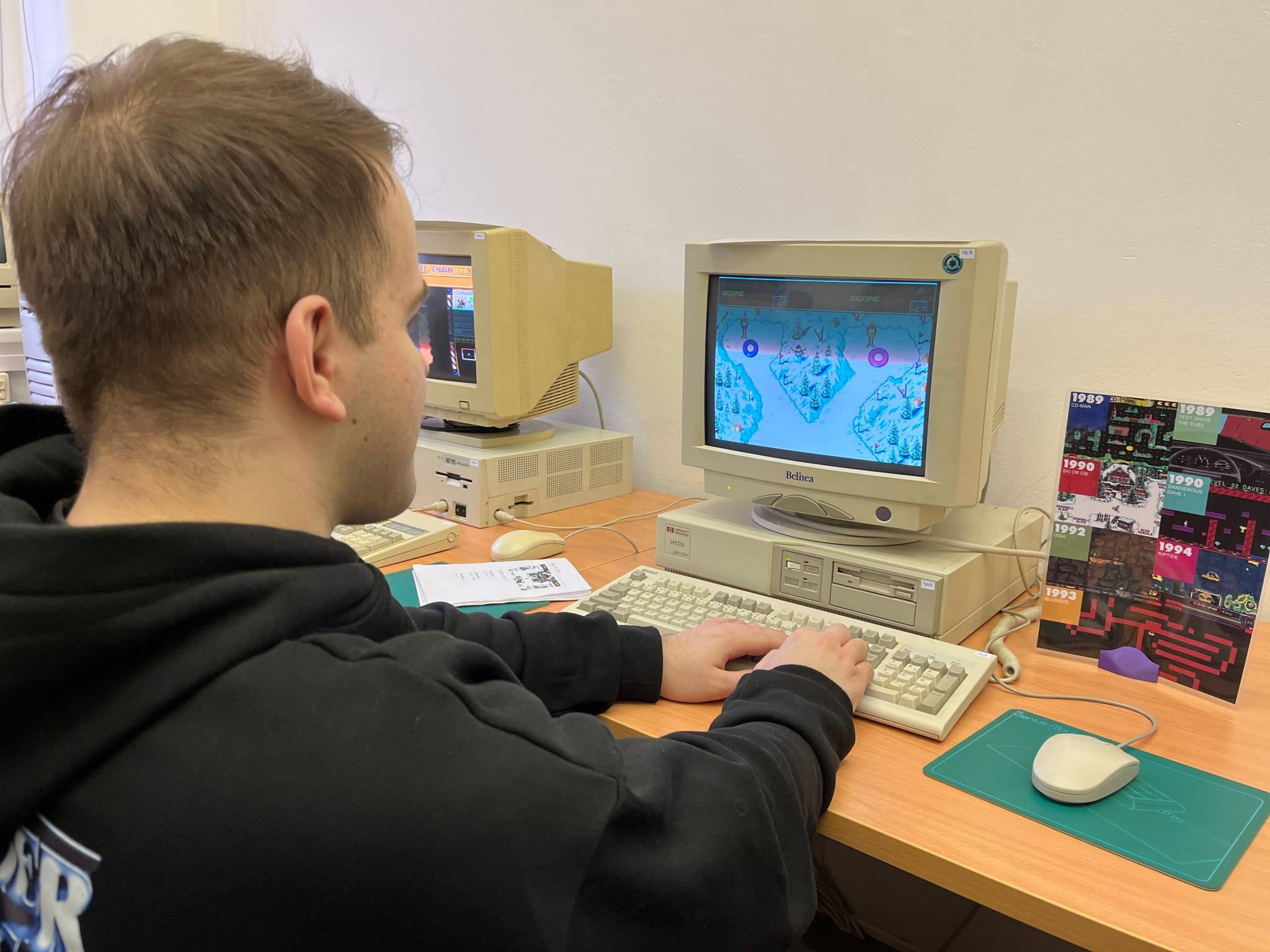 Poté pro nás byl připraven program složený z několika částí. První workshop byl zaměřen na 3D modelování, kde si žáci vyzkoušeli práci s prostorovými objekty a seznámili se s možnostmi jejich dalšího využití. Následně jsme zavítali do katedrálního muzea historických počítačů, kde jsme měli možnost nejen vidět vývoj výpočetní techniky, ale také si některé exponáty vyzkoušet a zahrát si na nich dobové hry.