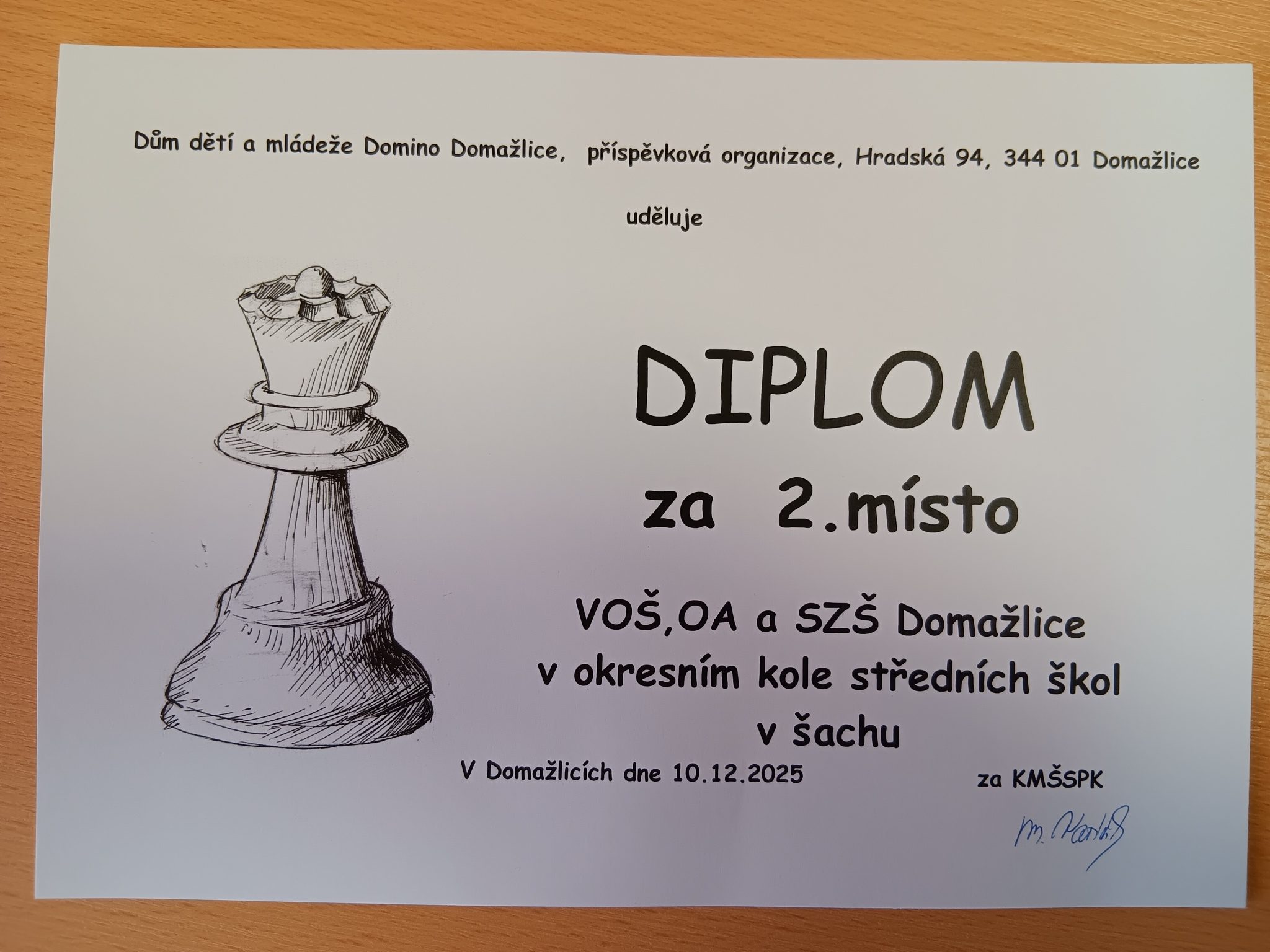 Okresní přebor škol v šachu (10. prosince 2025)